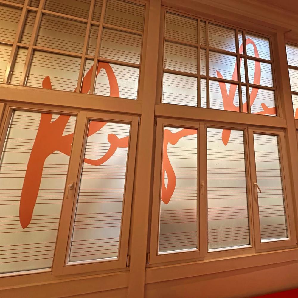 Qara Qarayev demək olar ki, bütün janrlarda əsərlər bəstələyib. Avstriyalı dizaynerlər, həmin əsərlər haqqında məlumatlar qeyd olunan divarları ayrı-ayrı rənglərə boyayıblar. Dram janrı boz rəngində, Opera və Balet üçün musiqi qırmızı rəngdə, kamera və simfonik musiqi qəhvəyi rəngdə və s. Bəstəkarın sevdiyi rəng qırmızı olduğu üçün divar çalarlarında qırmızı rəngdən daha çox istifadə olunub. Buranın tərtibat-dizayn işlərini “Partner Culture+Projects” (Hors Kampman) şirkəti həyata keçirib.