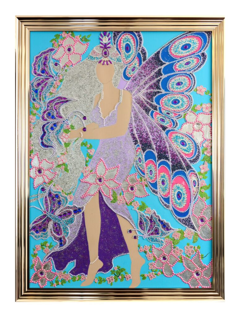 Kəpənək rəsmlərini çəkdikdən sonra üstünü müxtəlif təbii qaşlarla, müxtəlif materiallardan hazırlanmış daş- qaşla bəzəyirəm.